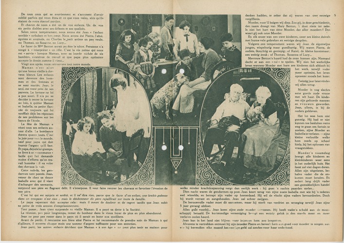 Mevrouw Benton's haard had de onze kunnen zijn. Niemand dacht er aan een « rol » te spelen. Wij zien het werkelijke leven wanneer Moeder met hare zes kinderen zich afslooft bij